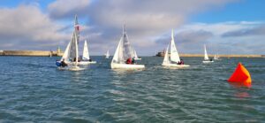 From early in the week it was apparent that temperature rather than wind would determine what would be possible on the first Sunday of the 2026 Frostbites. Both XCWeather and, closer to the day, Met Eireann, were agreed on a moderate forecast in terms of wind, but were equally agreed that temperatures would be low – only a couple of degrees above freezing. A number of seasoned Frostbite competitors had contacted me as to what might be possible or what should be available and there was consensus that we should try and get the Series “up and running”. Reading on Facebook of a late cancellation of a well-established “Frostbite event” in the UK, where competitors travel significantly longer distances to participate, due to temperature concerns, there was an increased resolve to make sure we had racing in Dun Laoghaire. Thirty-six boats shared the view that sailing was possible, so with the sun shining deceptively and temperatures in the2-4°range, Series 2 was initiated with a single longer-than-usual race to allow competitors to go straight home after they crossed the finishing line. There were no discordant voices raised to that prospect!