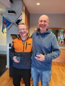 In keeping with the awareness of temperature, both ILCA fleets were given a four-lap race, to compact the finishing window for the whole Frostbite fleet. Six ILCA 7s were joined by a solitary ILCA 4 (Alex Butcher) in the second start – again a conservative one! Here the lead was taken by Hugh Delap at an early stage with Luke Murphy seemingly arriving to the start area slightly late but making up for that by heading the chasing pack behind Delap. Neil Hegarty took third in this fleet. Despite the cold, Conor O’Leary brought his usual cheery attitude to the race.